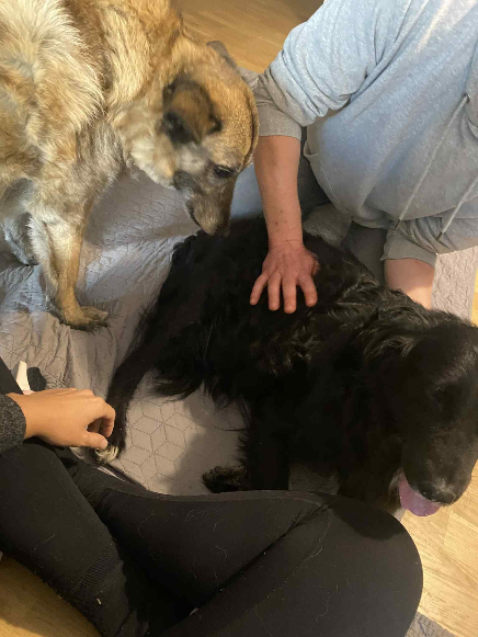 Pujdo, vermutlich ein Flat Coated Retriever-Mix, ist etwa zehn Jahre alt. Zwei Jahre lang musste er in Bosnien als Kettenhund leben. Das hat Spuren hinterlassen – seine Hüfte und Muskeln sind steif, das Gehen fällt ihm schwer, und oft hat er Schmerzen. Dank einer liebevollen Schmerztherapie und nun auch Massage bekommt sein Körper aber wieder ein Stück Beweglichkeit und Lebensqualität zurück. Und ja – er genießt jede Minute davon. ❤️